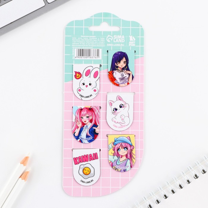 Закладки магнитные для книг, 6 шт. «Аниме» — Характеристики