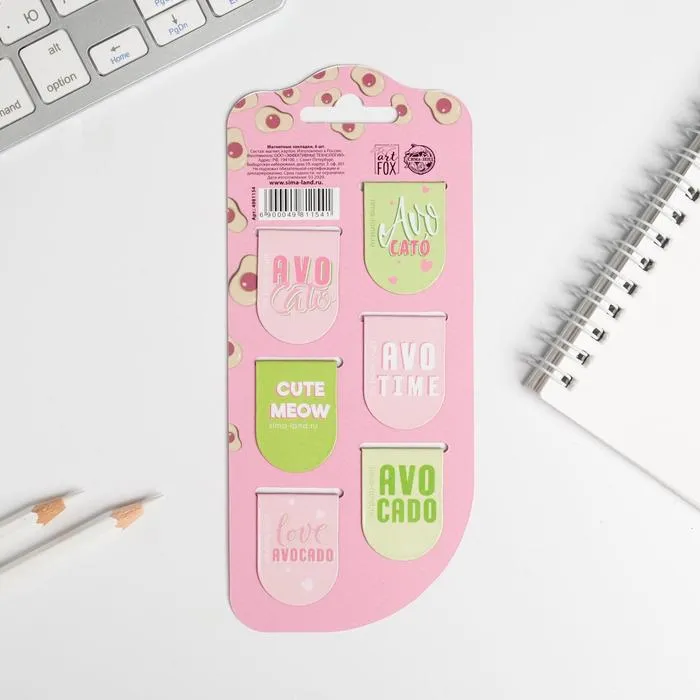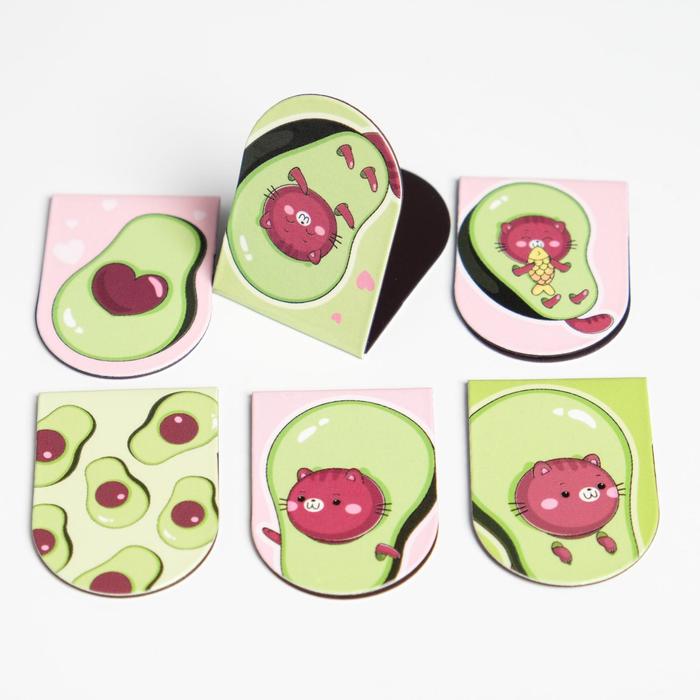 Закладки магнитные для книг, 6 шт «Авокадо»