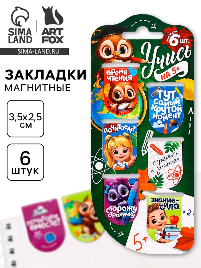 Закладки магнитные для книг, 6 шт «Школьные будни»