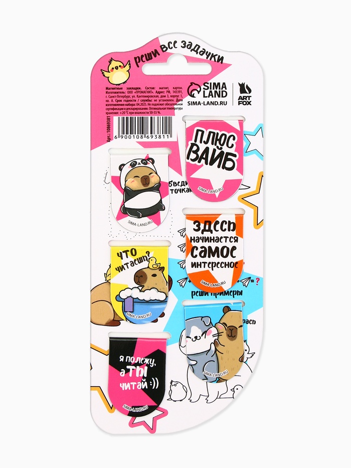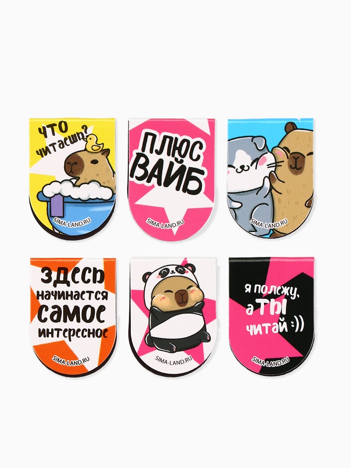 Закладки магнитные для книг, 6 шт. «Капибара» — Характеристики