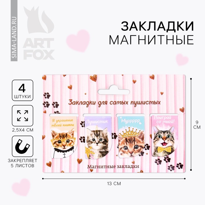 Закладки магнитные для книг, 4 шт. «Для самых пушистых»