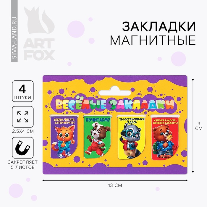 Закладки магнитные для книг, 4 шт. «Веселые закладки»
