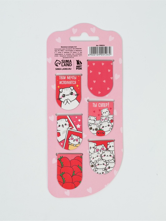 Набор магнитных закладок для книг Calligrata «Кошки», 6 шт., МИКС