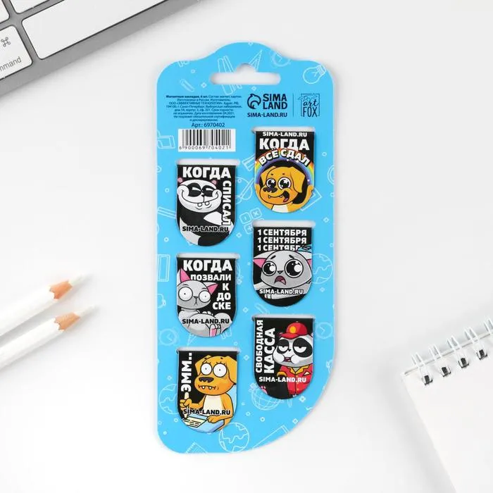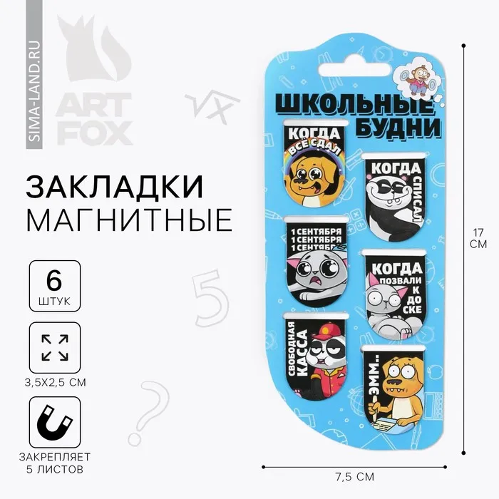 Закладки магнитные для книг, 6 шт «Школьные будни» — Характеристики