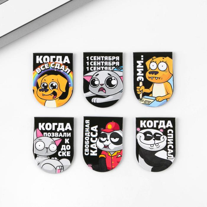 Закладки магнитные для книг, 6 шт «Школьные будни»