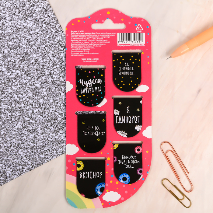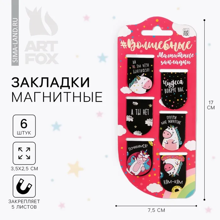 Закладки магнитные для книг, 6 шт «Волшебные»