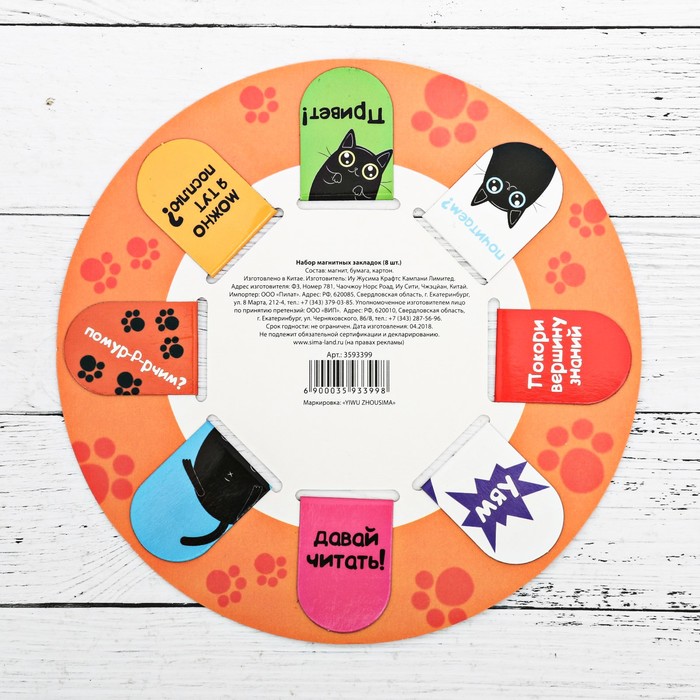 Закладки магнитные для книг, 8 шт. «Книжный котоман», 15×15 см — Характеристики