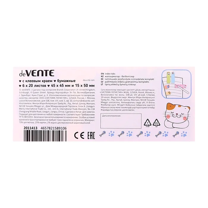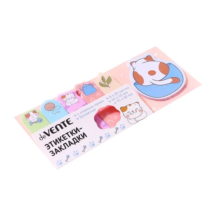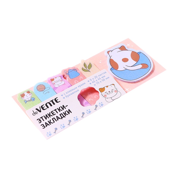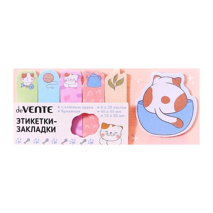 Закладки с клеевым краем бумажные deVENTE Lazy cat, дизайн 45×45 мм, 15×50 мм, 6 цветов × 20 листов — Характеристики
