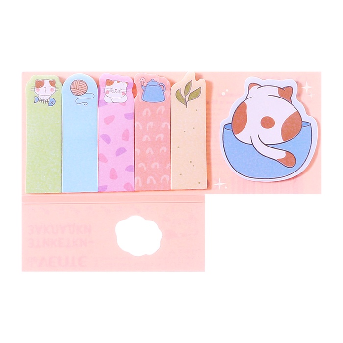 Закладки с клеевым краем бумажные deVENTE Lazy cat, дизайн 45×45 мм, 15×50 мм, 6 цветов × 20 листов