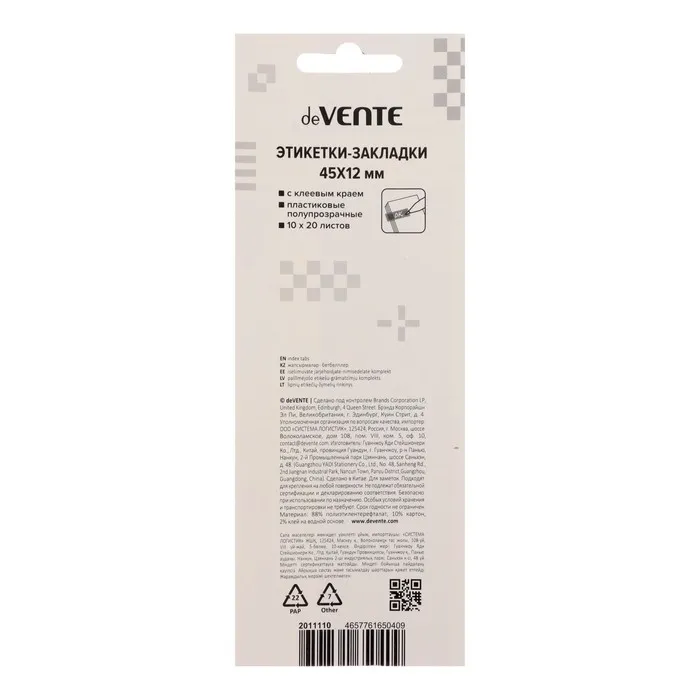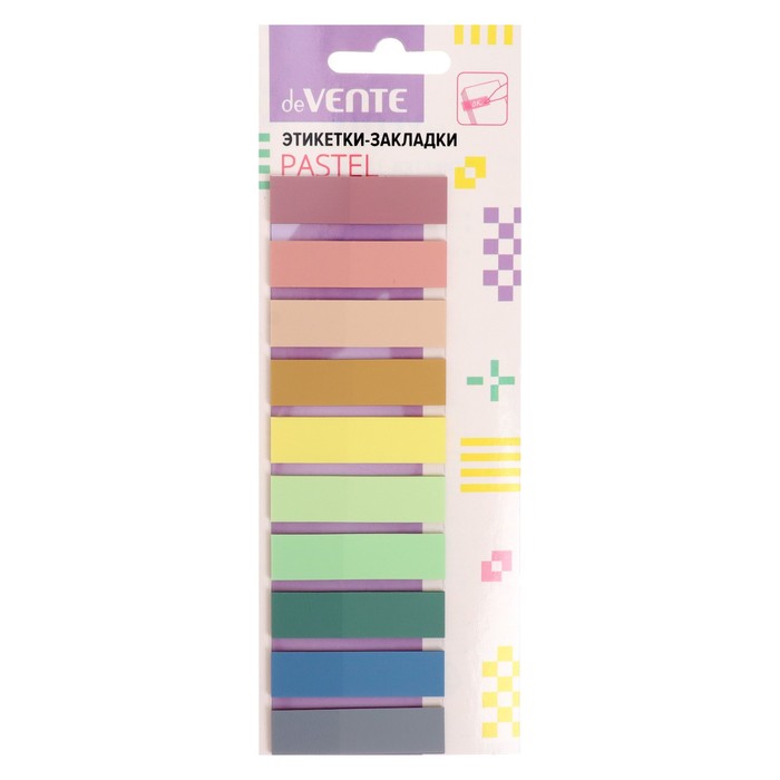 Закладки с клеевым краем deVENTE Pastel, 12×45 мм, 10 цветов × 20 листов, пластиковые, блистер — Характеристики
