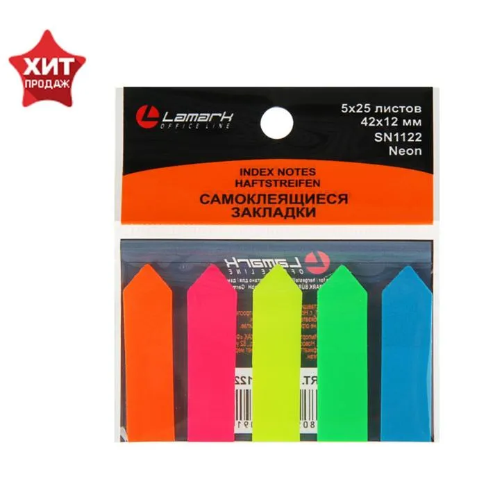 Закладки с клеевым краем Lamark Neon «Стрелки», пластиковые, 12×42 мм, 5 цветов × 25 листов — Характеристики
