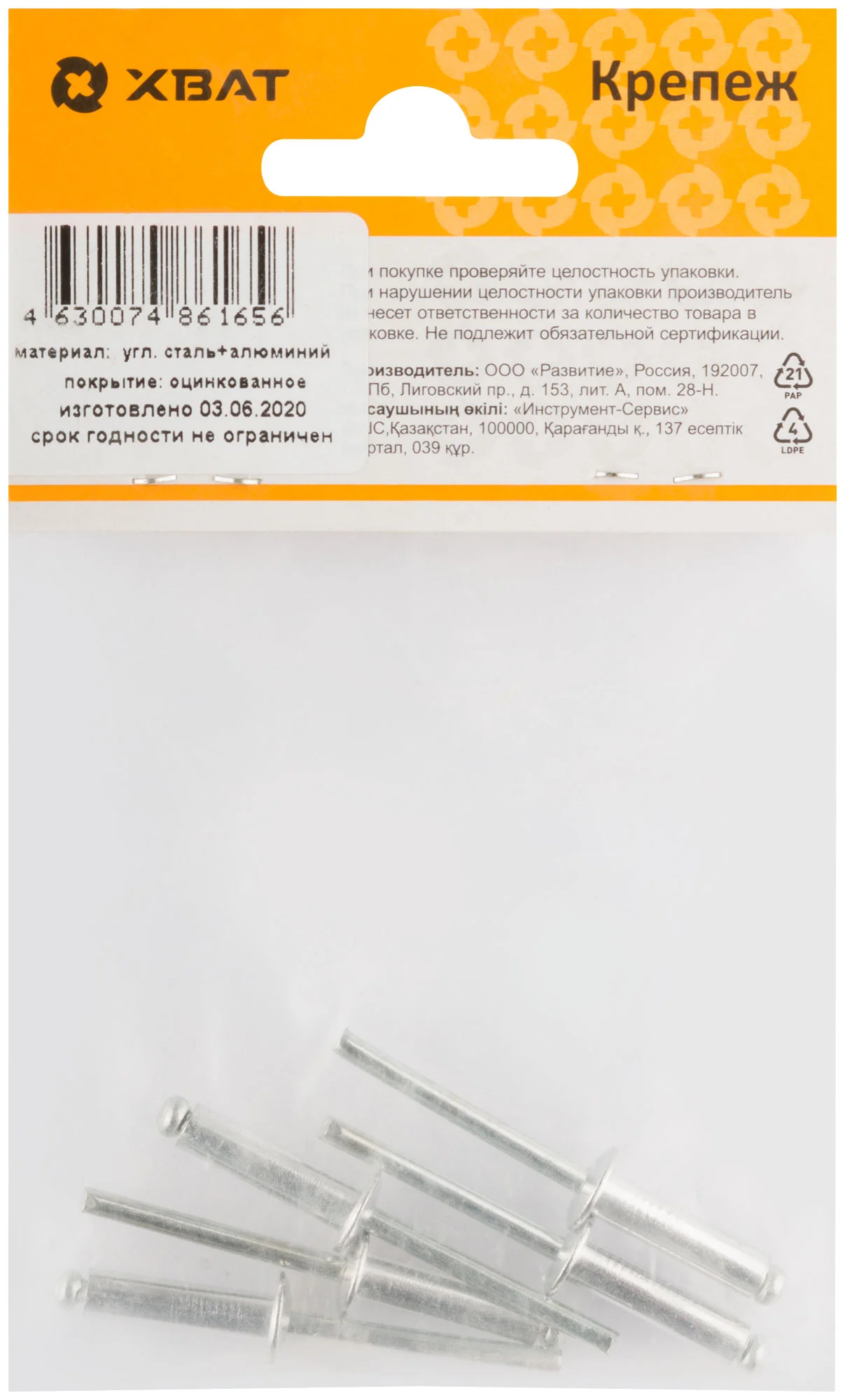 Заклепки 4,8 х 18 из алюминия и стали для прочных соединений