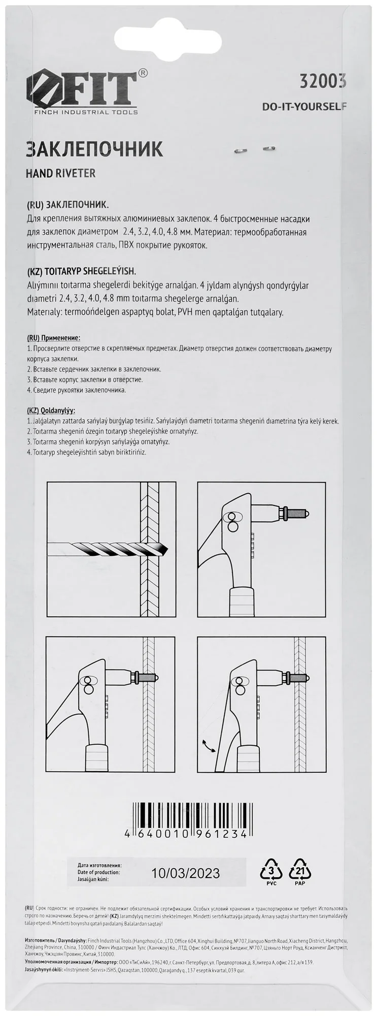 Выберите заклепочник FIT 32003 для надежного крепления и удобной работы с алюминиевыми заклепками.