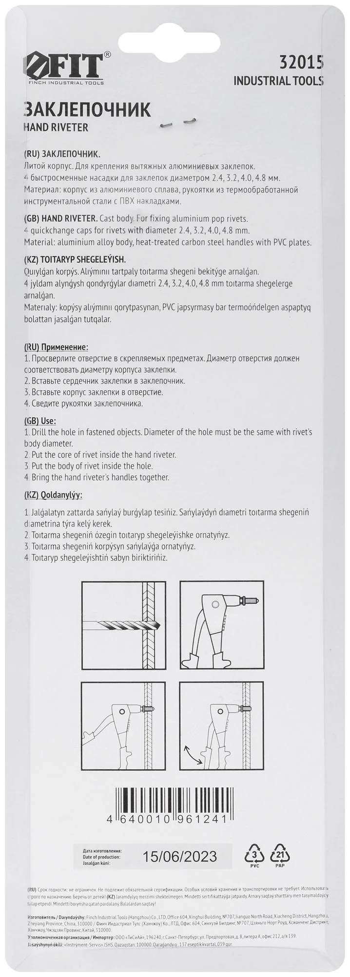 Выберите заклепочник FIT 32015, чтобы обеспечить надежное крепление в ваших проектах.