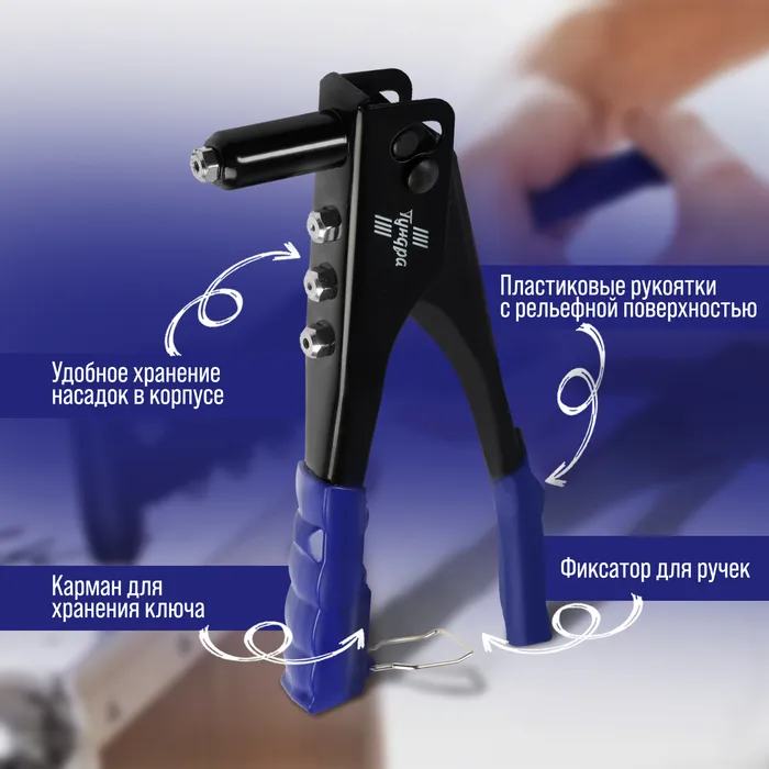 Заклепочник ТУНДРА, 240 мм, заклепки 2.4 - 3.2 - 4 - 4.8 мм — Характеристики