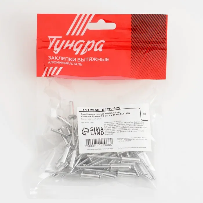 Заклёпки вытяжные ТУНДРА, алюминий-сталь, 50 шт., 4×16 мм — Характеристики
