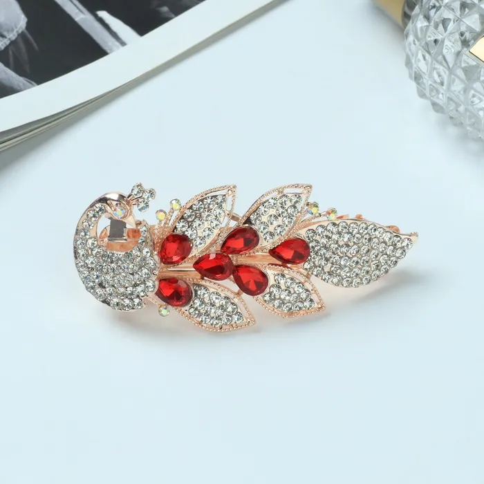 - Элегантный дизайн: стильная заколка в серебристых и красных тонах украшена изящным орнаментом птицы. Такой акцент станет идеальным дополнением к вечернему наряду или подчеркнёт повседневную элегантность.