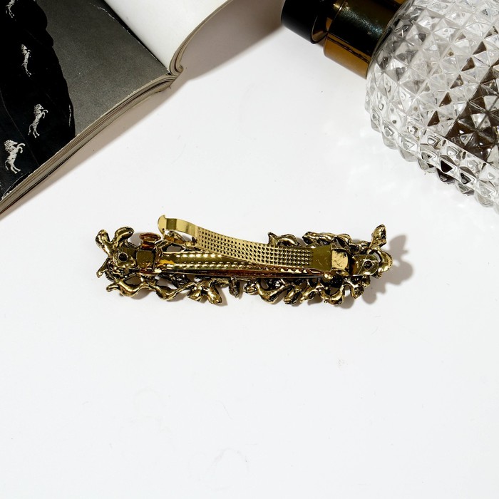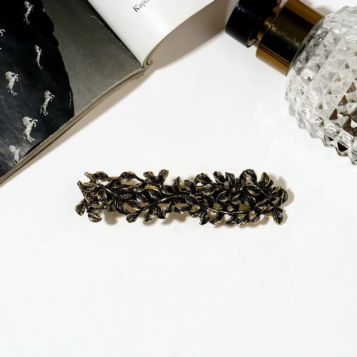 Элегантная автоматическая заколка в виде ажурных веточек добавит лёгкости и блеска любой причёске. Её универсальный дизайн подойдёт как для повседневного образа, так и для особых случаев. Золотистый оттенок гармонично сочетается с разными стилями — от романтичного до классического.