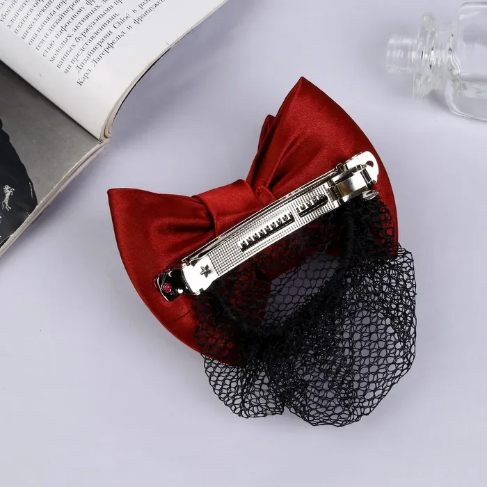 Элегантная заколка в стиле «Бантик» с дополнением в виде сеточки превратит любую прическу в произведение искусства. Сочетая в себе классический металлический блеск и изысканность текстильных материалов, этот аксессуар станет идеальным решением как для женщин, так и для девочек. Праздничный бордовый оттенок особенно подчеркнет ваш шарм, будь то на 8 марта, 1 сентября или другое торжественное событие.