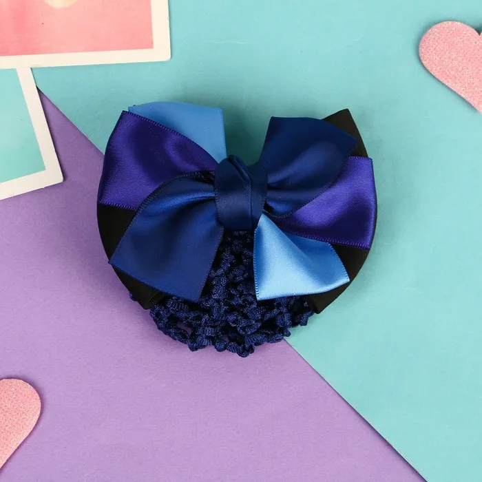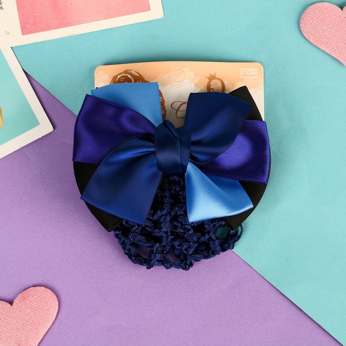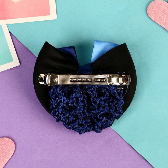 Заколка - автомат для волос «Бантик» с сеточкой для пучка, d=10 см, синяя — Характеристики