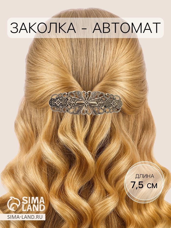 Заколка-автомат для волос "Бриана" овал, 7 см, серебро — Характеристики