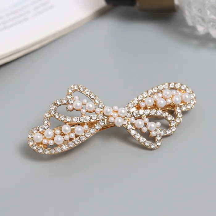 Элегантная заколка-бант станет вашим любимым аксессуаром для завершения повседневных и праздничных образов. Изящное сочетание золотистых и белых оттенков придаёт нотку утончённости и статусности. Эта заколка не просто украшение — это акцент, который подчеркнёт вашу индивидуальность.