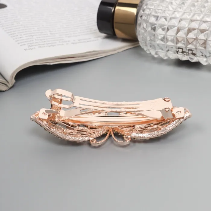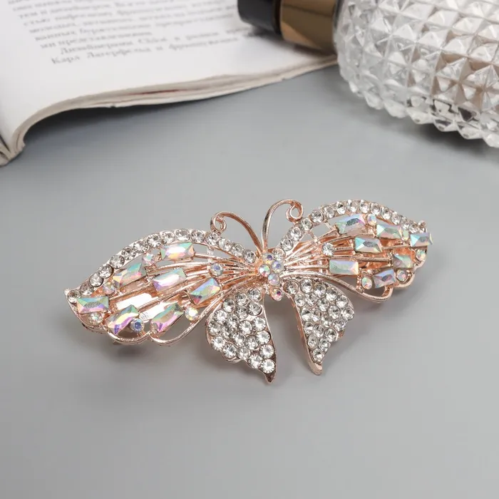 Ощутите гармонию стиля и функциональности с нашей блестящей заколкой-бабочкой. Эта уникальная металлическая заколка, украшенная стеклянными элементами, станет главным акцентом вашего образа. Идеальна для женщин, ценящих элегантность и простоту, она предлагает удобную фиксацию и утонченное сияние.