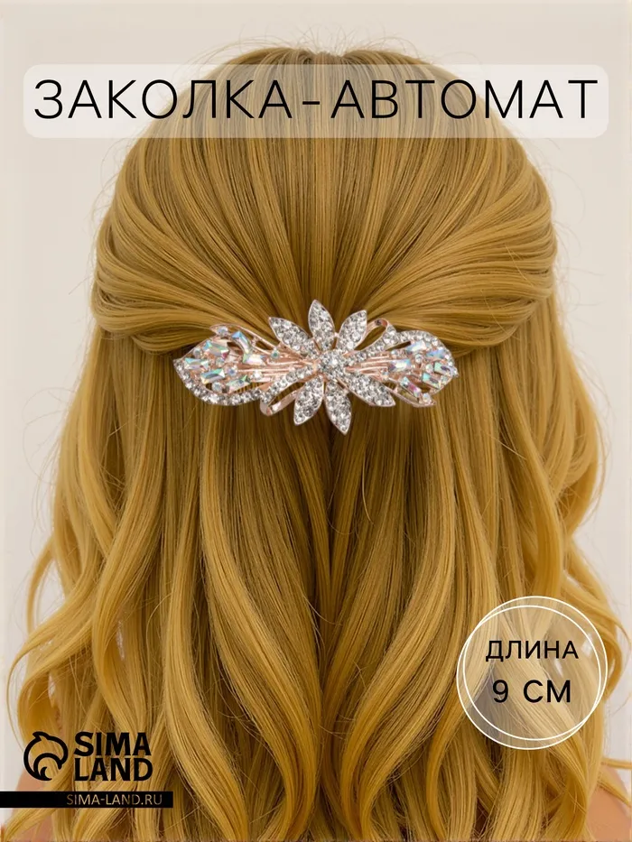 Элегантная заколка для волос придаёт образу изысканность и становится стильным акцентом для повседневных и вечерних укладок. Металлический аксессуар цвета золота со стеклянными элементами создан для женщин, ценящих утончённость и надежность в деталях.