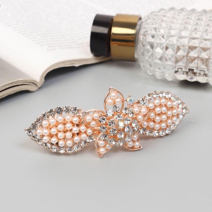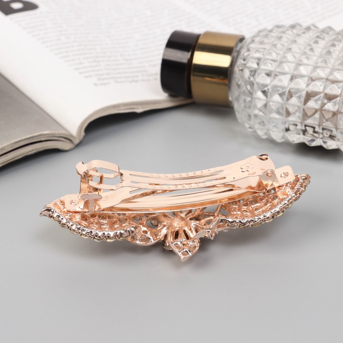 - Изысканный дизайн: заколка в виде цветка выделяется благодаря своей благородной золотой цветовой гамме и утонченной отделке из стекла и пластика. Она станет отличным дополнением к любому наряду, помогая создать элегантный и стильный вид.