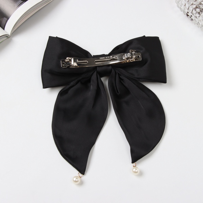 Изысканная заколка с бантом станет отличным дополнением к любому женскому образу. Этот элегантный аксессуар выполнен в универсальном чёрном цвете, что делает его идеальным выбором для любого случая — от офисных встреч до романтических свиданий. Изготовленный из пластика, металла и текстиля, он сочетает в себе прочность и стиль.