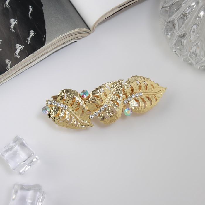 - Элегантный дизайн: золотистый блеск и утончённые листья стекла придают заколке изысканный вид, который идеально дополняет как повседневный, так и вечерний образ.