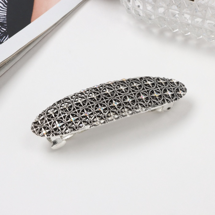 - Сдержанный дизайн: серебристая палитра и утончённые линии создают изысканный и современный вид, который легко сочетается с любым образом. Заколка поможет создать стильную причёску, будь то деловое совещание или романтический ужин.