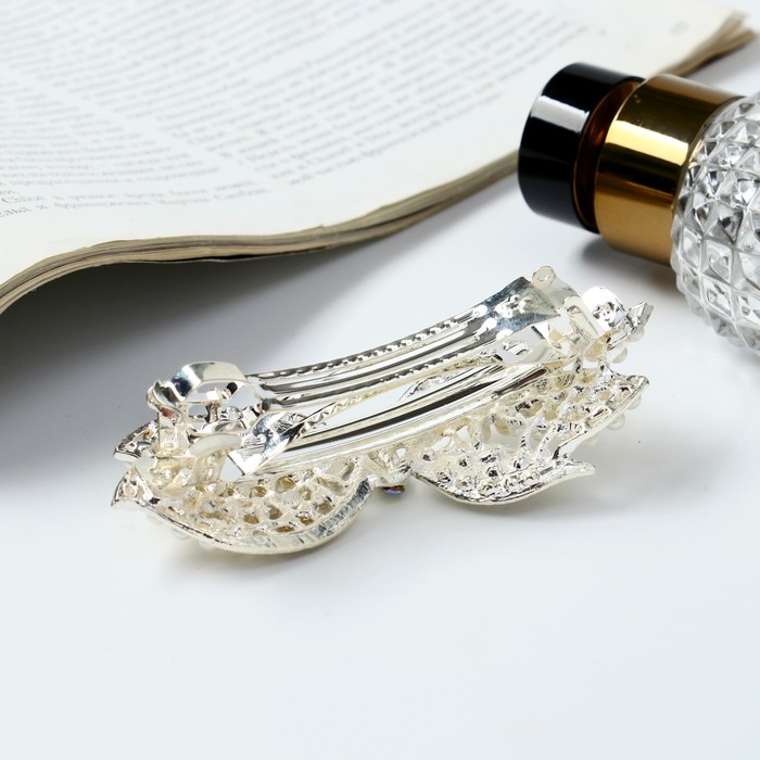 - Эстетика и практичность: благодаря классическому серебристо-белому цвету, эта заколка гармонично дополнит любой наряд. Металлическая основа обеспечивает надежную фиксацию, создавая аккуратную прическу без лишних усилий.