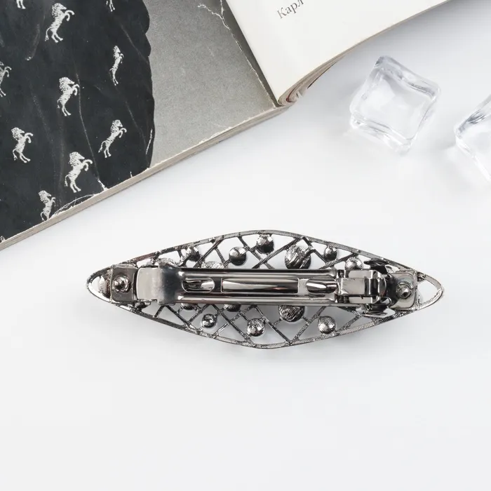 - Надежные материалы: изготовленная из прочного металла, пластика и украшенная стеклом, заколка обеспечивает долгий срок службы и надежно фиксирует волосы, создавая удобную причёску на целый день.