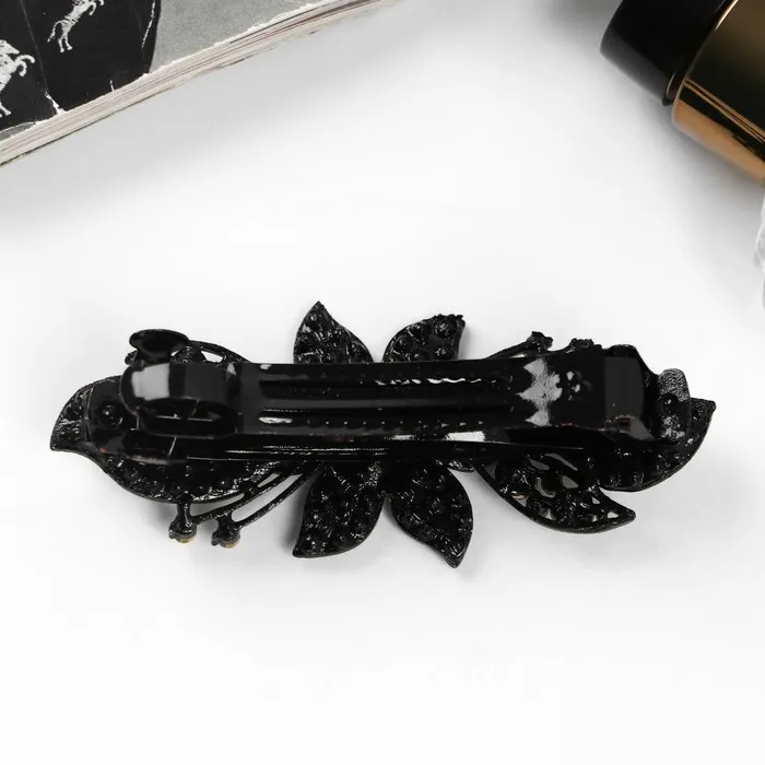 Изысканный «Цветочный аксессуар для волос» станет незаменимым спутником в вашем арсенале женственных украшений. Этот серебристо-чёрный изящный элемент подчеркнёт вашу индивидуальность, особенно в праздничные дни, такие как Международный женский день. Используя благородные материалы – металл и стекло, он добавляет утончённость вашему образу.