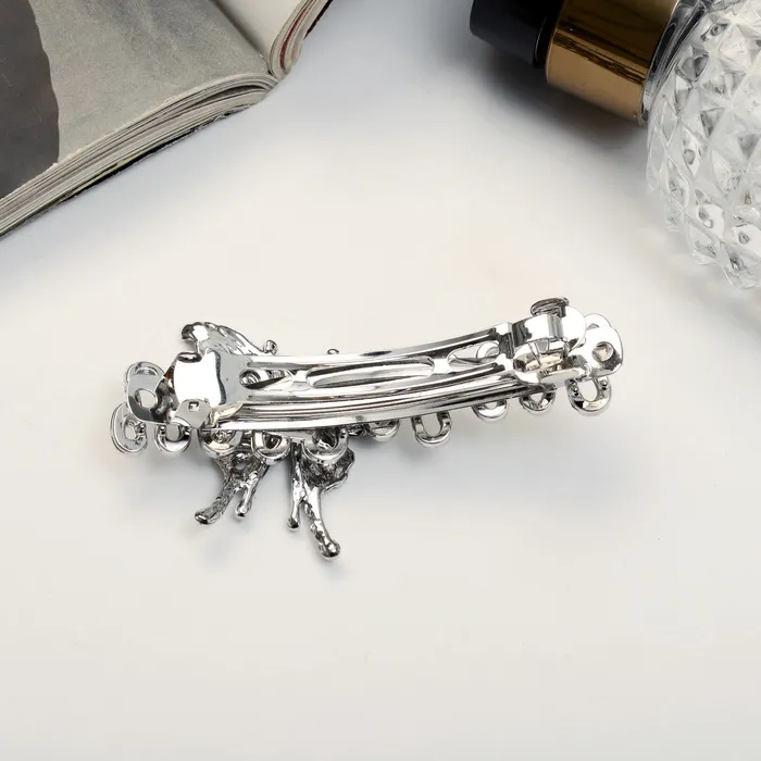 - Металлический шик: изготовленная из металла, заколка выглядит современно и стильно. Её блестящее серебристое покрытие добавляет образу яркости и нежности.