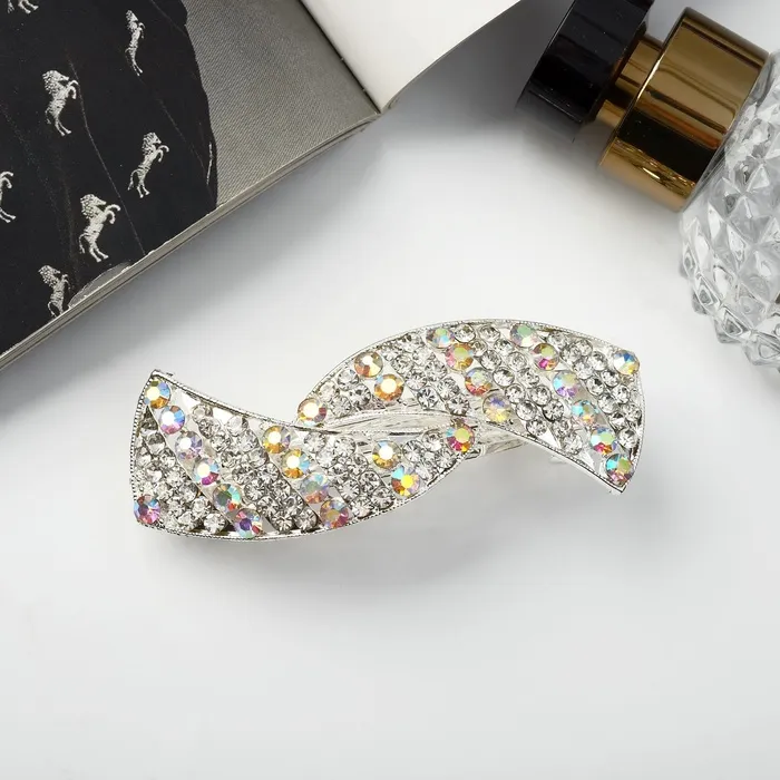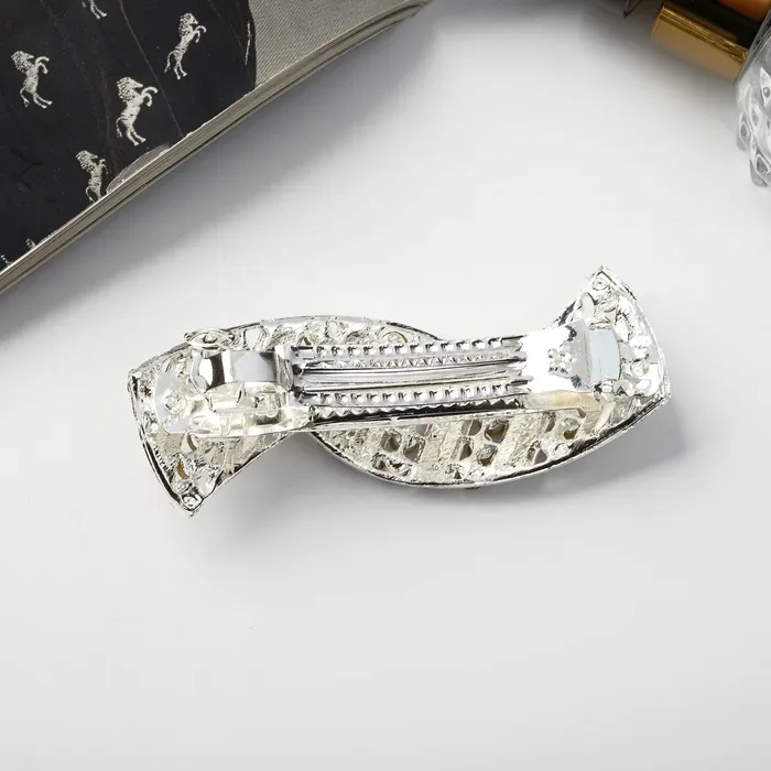 Заколка - автомат для волос «Линетта», волны, 8.5 см, серебро