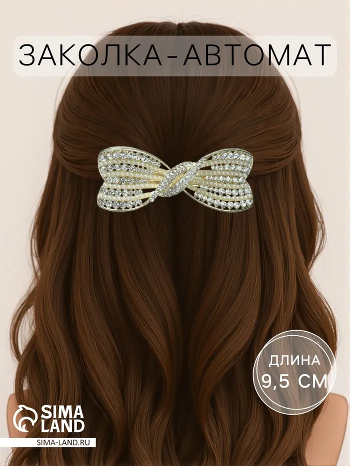 Великолепное украшение для ваших волос! Элегантная заколка-автомат с бантом — это изысканное сочетание стиля и надёжности в одном аксессуаре. Подчеркните свою индивидуальность выразительными акцентами из металла, стекла и пластика.