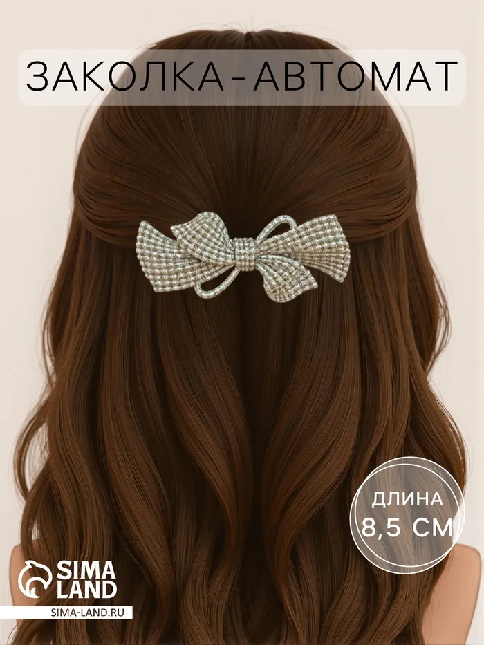 Подчеркни свою изысканность с каждой деталью образа! Элегантная заколка-автомат со стильным бантом – это не только средство для фиксации волос, но и изящный аксессуар, придающий образу завершенность и стиль.