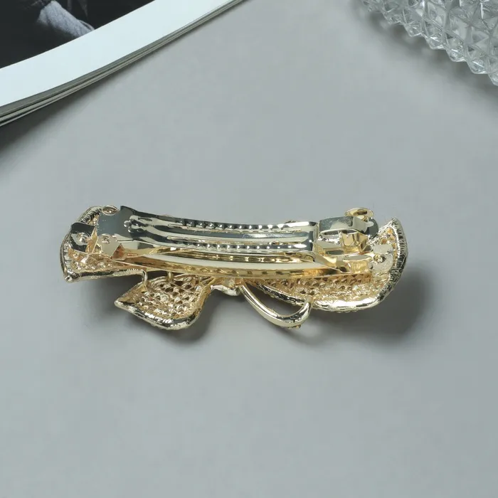 - Качественные материалы: заколка выполнена из прочного металла с элементами из стекла и пластика. Это обеспечивает долговечность и надёжность использования.