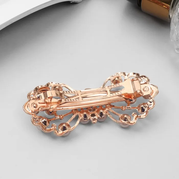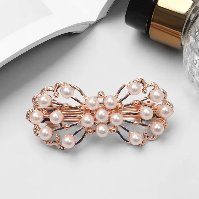 Создайте элегантный акцент в прическе! Бантик-заколка 6,5 см – это стильное украшение, которое добавит изысканность вашему образу. Заколка выполнена в золотисто-белой гамме, подчеркивая утонченность металлического блеска в сочетании с нежностью пластика.
