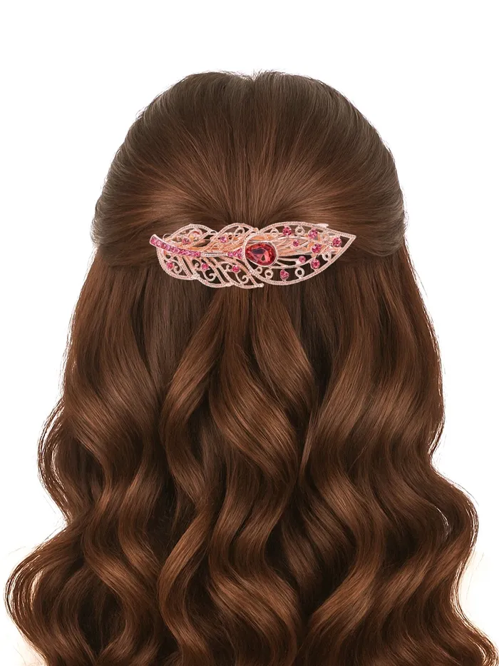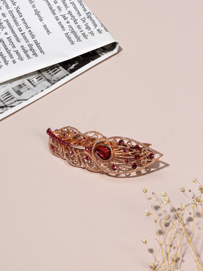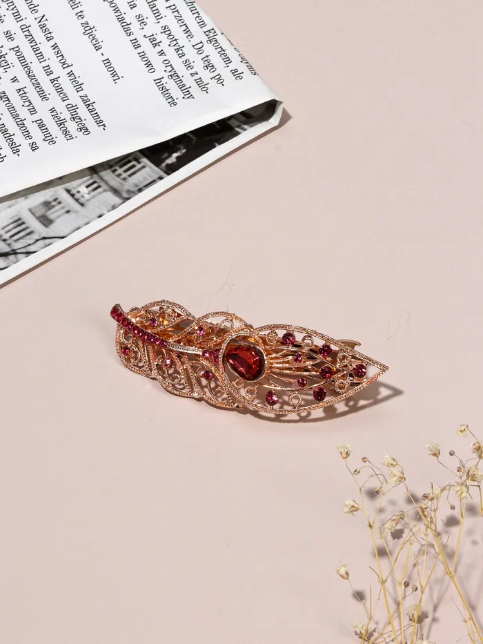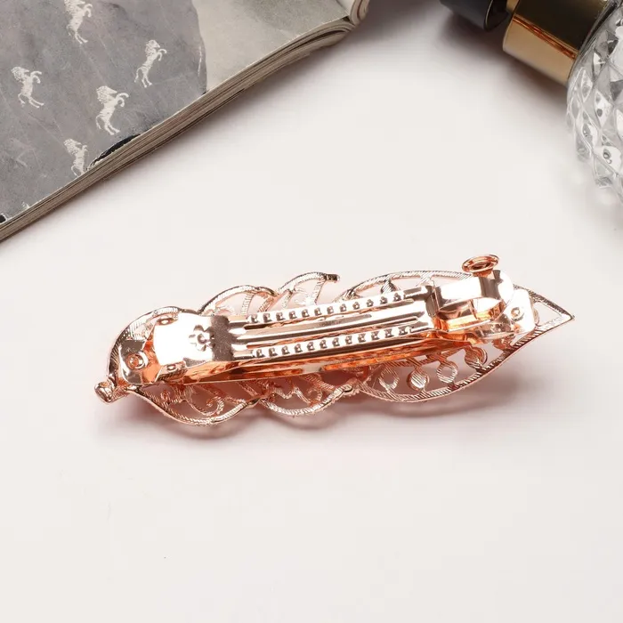 Эта изысканная заколка-автомат в золотистом исполнении с элементами в виде листочка станет стильным акцентом в вашем образе. Элегантный дизайн и высококачественные материалы придадут вашему стилю утонченности и оригинальности.
