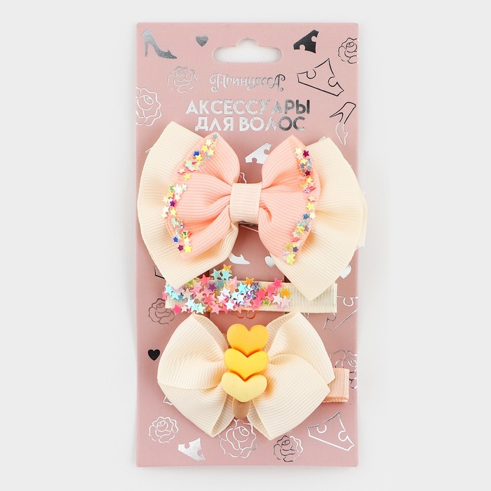 Заколки для волос 3 шт., бант, Принцессы