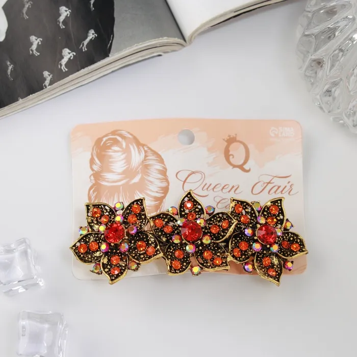 • Элегантный дизайн: золотистые элементы и цветочные мотивы создают гармоничное сочетание, привлекая внимание и подчеркивая вашу индивидуальность. Такая заколка станет акцентом в любой причёске и обогатит ваш образ.
