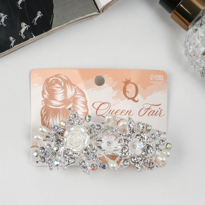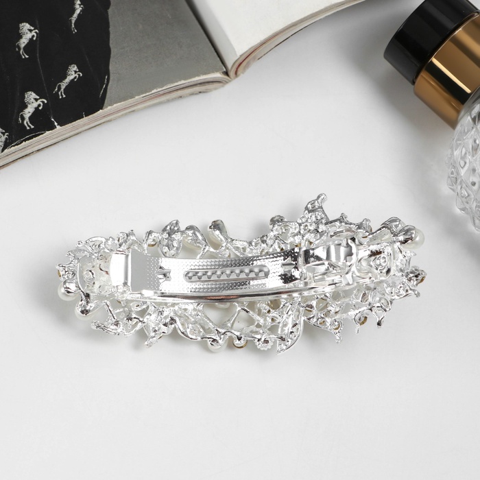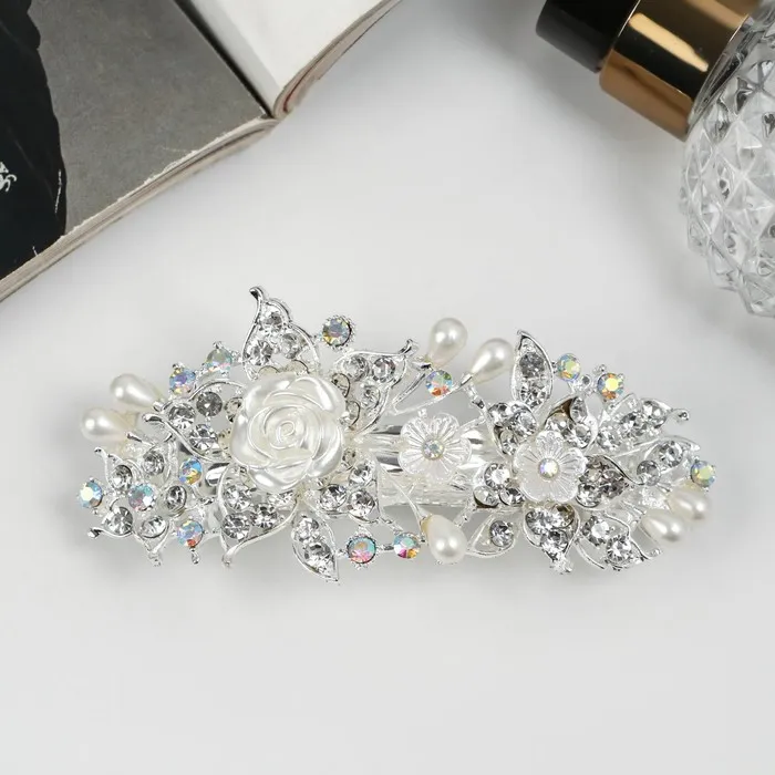 Элегантная заколка «Озлем» станет стильным акцентом в образе, подчёркивая вашу индивидуальность. Этот аксессуар добавит торжественности как будним дням, так и особым случаям, таким как 8 Марта. Он выполнен из металла и стекла, что придаёт заколке утончённость и надёжность. Серебристо-белая гамма делает её универсальным дополнением для любого платья или костюма.
