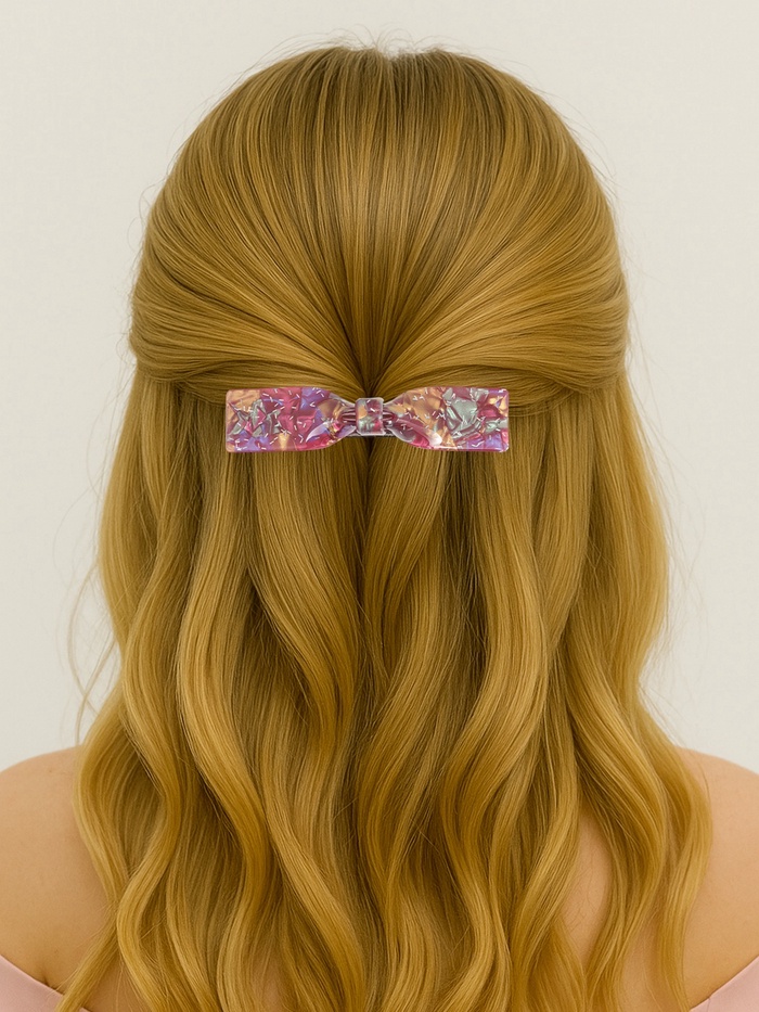 - Прочность и легкость: Заколка выполнена из прочного пластика, она не ломается при частом использовании и не утяжеляет прическу. Ее удобно носить с собой весь день, не ощущая в волосах.