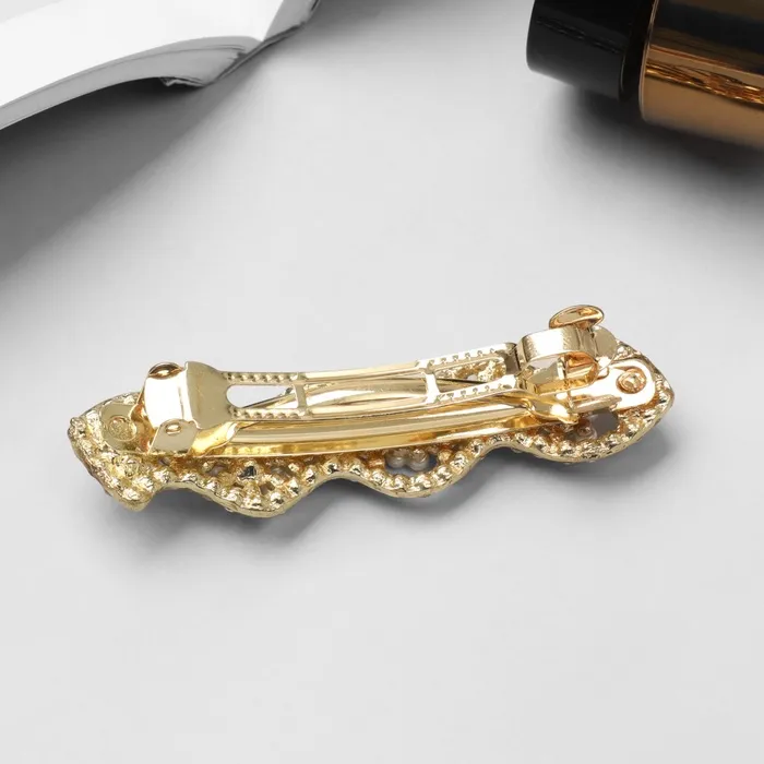 Элегантная заколка-автомат: стиль и комфорт для ваших волос – идеальный аксессуар для женщин, стремящихся добавить изысканность в повседневный образ. Этот аксессуар объединяет в себе золотистый и белый цвета, гармонично сочетающиеся с различными нарядами.