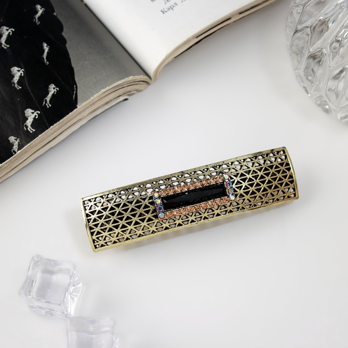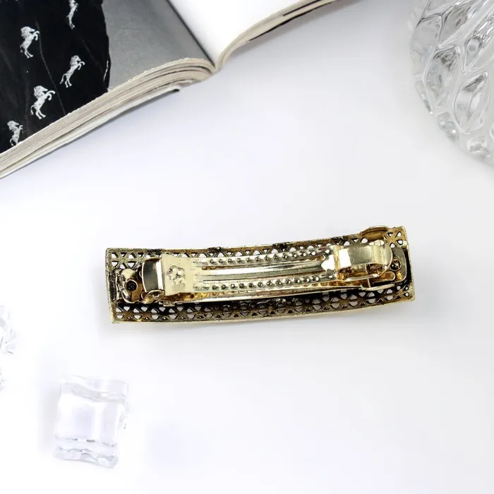 - Эффектный дизайн: заколка выполнена в тёмном золотистом оттенке с яркими стеклянными элементами. Элегантный аксессуар подчеркнёт индивидуальность и стиль в любой обстановке – будь то офис, вечеринка или прогулка по городу.