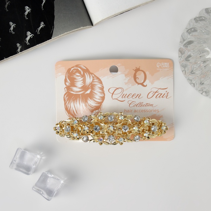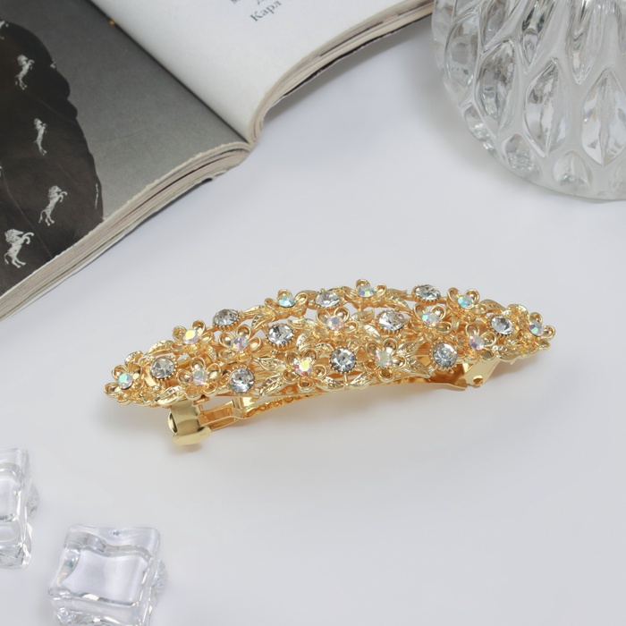 Придайте утончённости вашему образу! Элегантная золотистая заколка-автомат для волос – изысканный аксессуар, способный дополнить любой стиль. Изготовлена из высококачественного металла и стекла, длиной 9 см, она станет неотъемлемой частью вашей коллекции украшений.