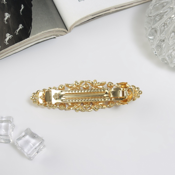 • Стиль и функциональность: эта изящная заколка не только удерживает волосы на месте, но и придаёт образу нотку роскоши благодаря благородному золотистому оттенку.